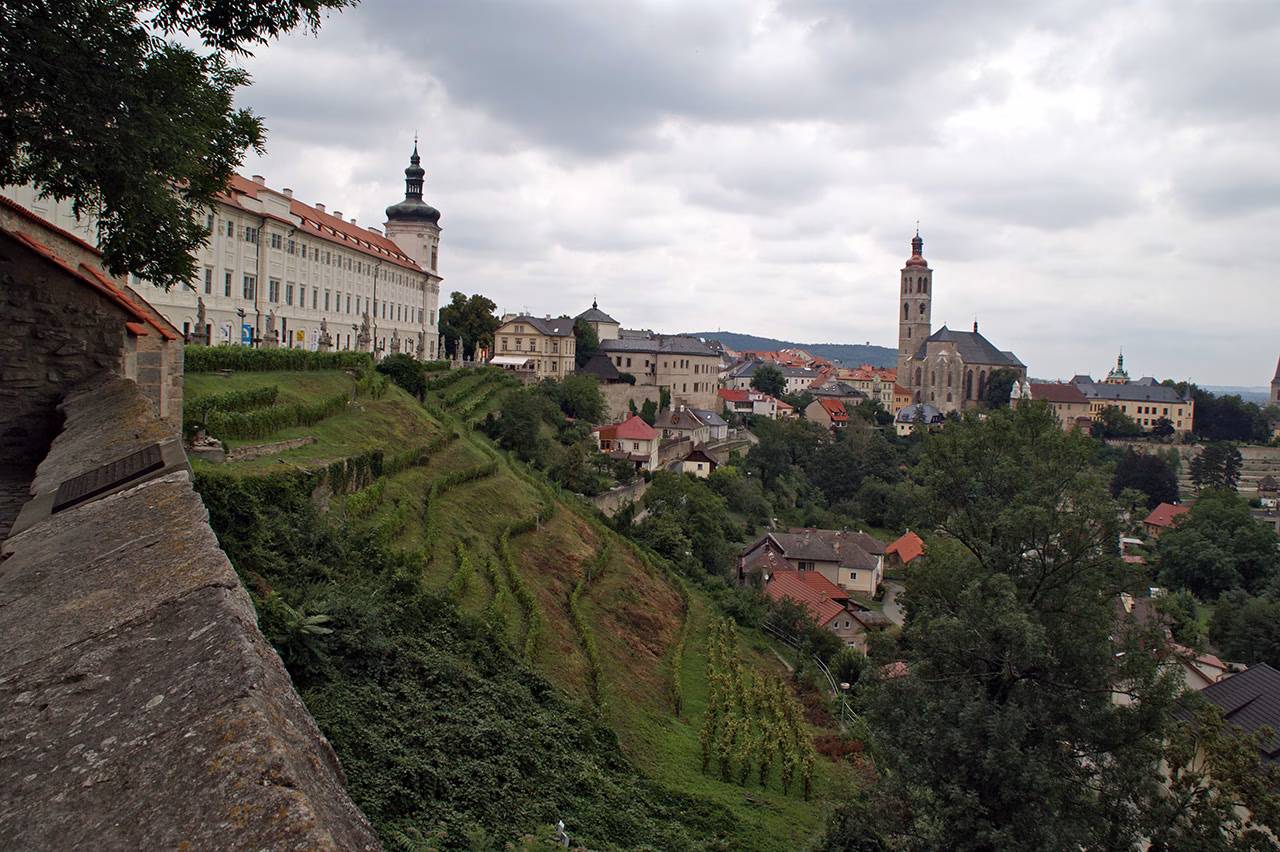 Poté, co jsem se dostatečně pokochal výhledem z hradeb do údolí a na vinice u Jezuitské koleje, jsme zašli ještě do Kaple božího těla. Stavba sekundovala Chrámu sv. Barbory a původně měla sloužit jako kostnice, která by trumfla tu v Sedleckém klášteře, se kterým se kutnohorští kočkovali. Jezuité ji proměnili v modlitebnu. Uchvátí vás zdejší akustika. Vstupné do kaple je 20 Kč.