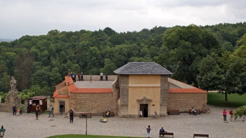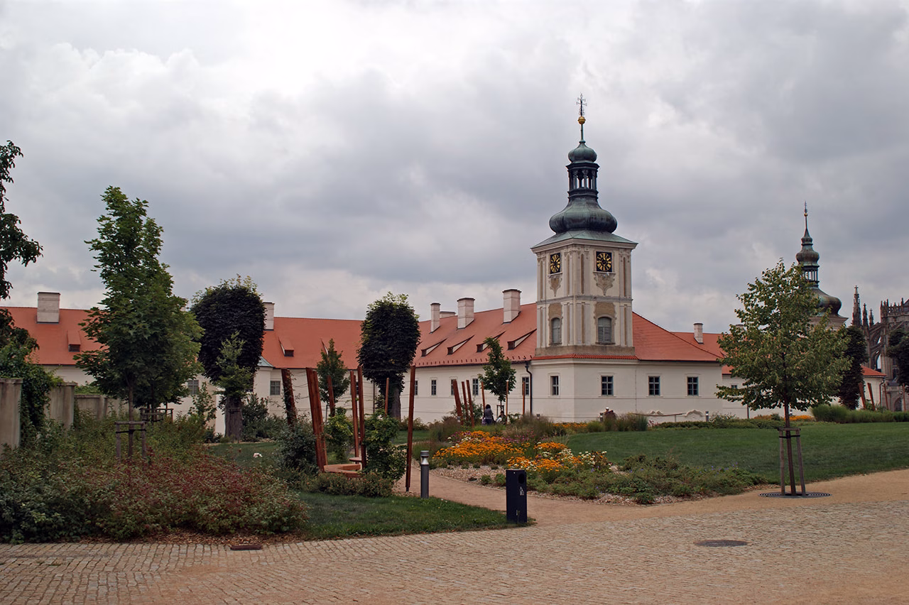 Při procházce v parku GASK jsem ovšem celou dobu pokukoval po Chrámu sv. Barbory. Pokud nic jiného, tak tento se vám ve spojení s Kutnou Horou nepochybně vybaví. Byl jsem jen trochu vyveden z míry, že chrám vypadal nějaký malý. Jakmile jsme došli k východu z parku do areálu okolo chrámu, vše jsem pochopil. Park je o dost výše, než stojí samotný chrám, sejít k němu musíte po schodech.