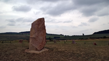 Pro tento článek je ovšem důležitější, že cestou z restaurace do města jsme míjeli kutnohorské menhiry. A samozřejmě jsme se u nich zastavili. Menhiry zde vztyčili v letech 2012 až 2013 místní nadšenci na místech, kde jsou v krajině k nalezení energetické body. První byl kamenný kruh, poté byly vztyčeny okolní kameny a postupně přibývají další. Pod šestitunovým kamenem vztyčeném 30. dubna 2012 na keltský svátek Beltaine najdete pamětní schránku.