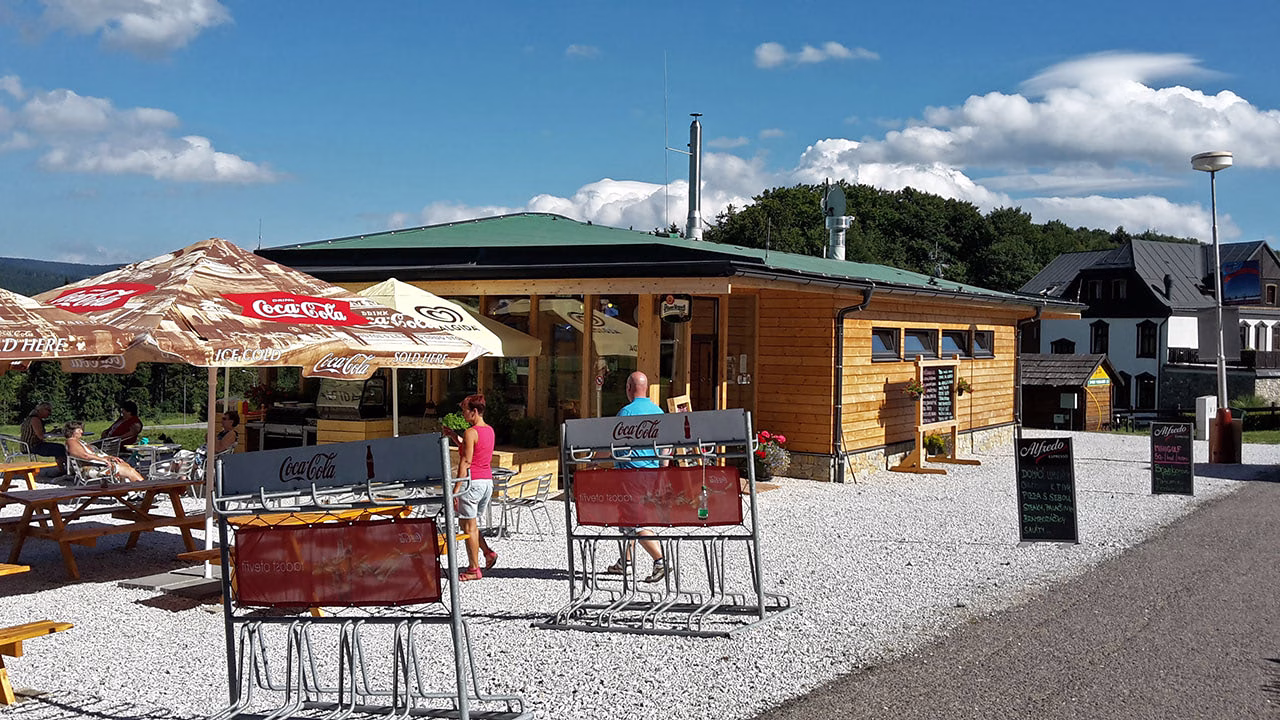 K lanovce na Černou horu je to odtud, co by kamenem dohodil. Můžete se vydat dolů po silnici, nebo se vrátit druhou lesní cestou přeťatou Janským potokem, která ústí přímo u lanovky, respektive na kraji Janských lázní a u Lučního domu a chaty Viktorka. Ke spodní stanici lanové dráhy je to odtud pár metrů.